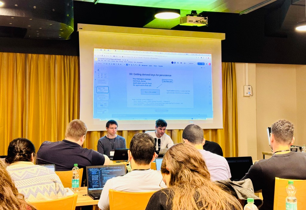 To close out Day 2, IC3 Associate Director Andrew Miller and Cornell Tech PhD student James Austgen led a hands-on workshop focused on Trusted Execution Environments (TEEs). Attendees moved beyond theory, engaging in an interactive session to explore the practical implementation of hardware-based security in decentralized systems.